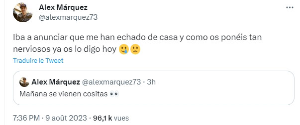 Cela était difficile à comprendre, sauf à remonter dans les tweets du pilote espagnol qui annonçait vers 19 heures « Demain, arriveront des choses », avant d’ajouter, une heure plus tard, « J’allais annoncer qu’ils m’ont viré de la maison et puisque tu deviens si nerveux, je te le dis aujourd’hui ».