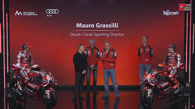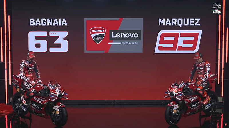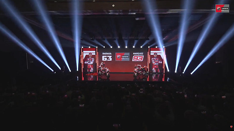 Mis à part que Claudio Domenicali, Luigi Dall’Igna, Davide Tardozzi, Marc Marquez , Francesco Bagnaia et Michele Pirro seront évidemment là, on n’a encore aucun détail, mais cette présentation s’annonce déjà à la hauteur de la domination actuelle, très loin d’une simple mise de clip en ligne !