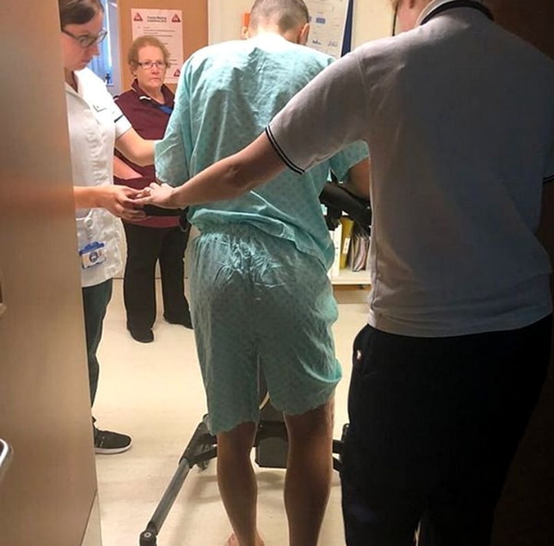 Un jour seulement après sa triple fracture tibia-péroné-fémur et son opération, le pilote espagnol a effectué ses premiers pas à l’hôpital.