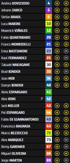 Aleix Espargaro (Aprilia Racing), Jack Miller (Ducati Lenovo Team), Johann Zarco (Prima Pramac Racing), Jorge Martin (Prima Pramac Racing), Fabio Quartararo (Monster Energy Yamaha MotoGP™), Maverick Viñales (Aprilia Racing), Joan Mir (Team Suzuki Ecstar), Luca Marini (Mooney VR46 Racing Team), Takaaki Nakagami (LCR Honda Idemitsu) et Maverick Viñales (Aprilia Racing) se sont également qualifiés directement pour la Q2 et éviteront une séance supplémentaire de 15 minutes, ce qui, avec les températures élevées qui règne actuellement en Saxe, est toujours bon à prendre au niveau de l’énergie.