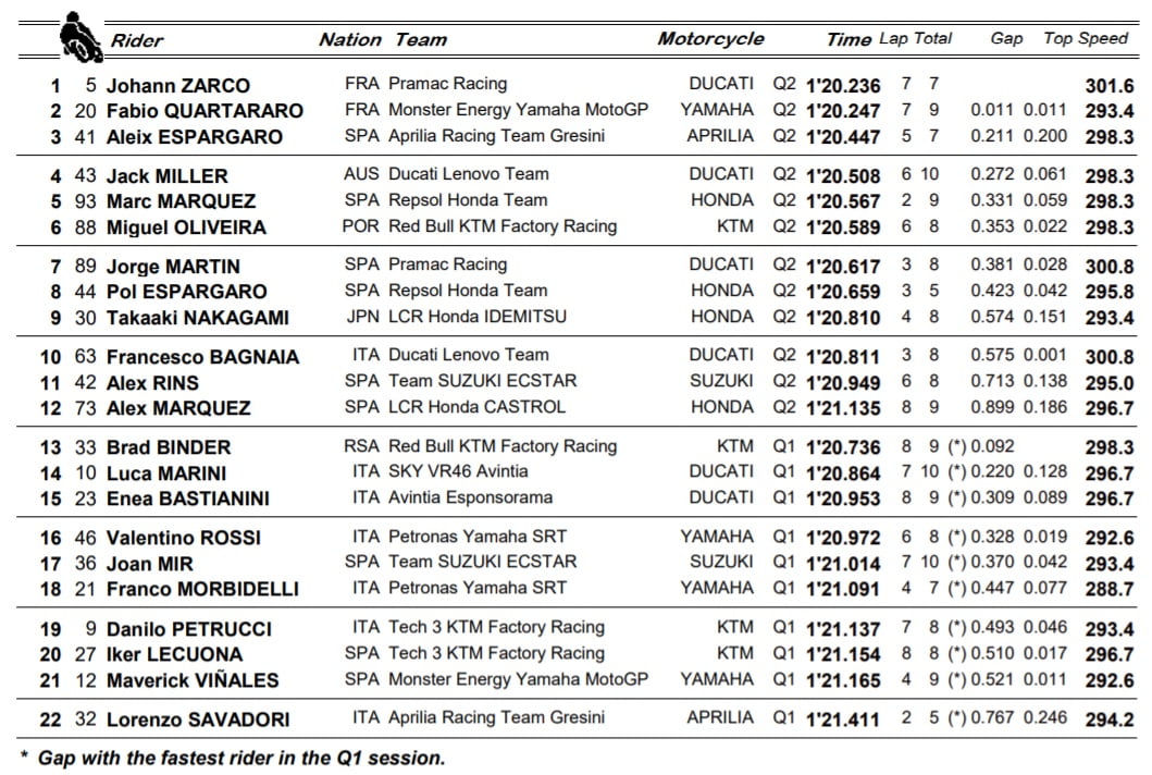 « Nous sommes un peu déçus car ce n’était pas le maximum de ce que nous pouvions avoir », a soupiré celui qui est remonté à la septième place du championnat en deux rounds. « Les drapeaux jaunes ont gâché les occasions et c’était difficile de trouver une bonne position sur la piste. Assurer une deuxième ligne sur la grille dans ces circonstances n’est pas une mauvaise chose » reconnait tout de même l’équipier de Brad Binder treizième.