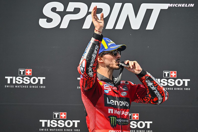 Parfois, l’humilité et le naturel de Bagnaia sont quelque peu déconcertants. Malgré trois victoires dans l’exercice, il prétend que ce Sprint était « le meilleur de l’année du point de vue du fun », tout en étant absolument pas inquiété ou déçu au moment de descendre de sa machine. Clairement, son inébranlable confiance fait presque peur. En tout cas, il sera très intéressant de voir comme Pecco va rebondir après cette légère déconvenue.