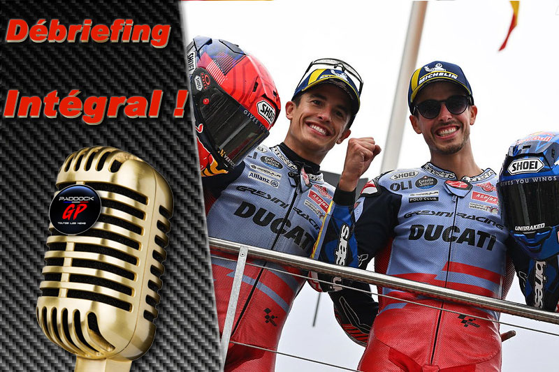 Mesdames et Messieurs, bonjour. Bienvenue à la conférence de presse d’après course du Molly Grand Prix d’Allemagne, neuvième manche du championnat du monde MotoGP de cette année, qui a connu une conclusion spectaculaire. Et quelle journée non seulement pour Gresini Racing mais aussi pour la famille Marquez ! Un autre retour incroyable de Marc Marquez, 11 fois vainqueur ici au Sachsenring, de la 13ème à la 2ème place après un week-end très mouvementé ici pour Marc. Et le rejoignant sur le podium avec une émotion particulière, c’est la première fois depuis Imola 1997 que deux frères montent sur le même podium de la catégorie reine, le podium étant bien sûr complété par Alex Marquez. Messieurs, bien joué, félicitations à vous trois, vous avez tous de grands sourires sur vos visages pour une très bonne raison !