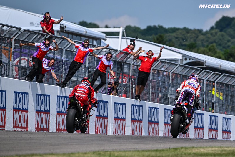 Francesco Bagnaia : « C’était amusant. J’ai vraiment apprécié la course, plus qu’hier. C’était une bataille vraiment intense. J’ai essayé, j’ai tout essayé, mais finalement Jorge était plus rapide, et peut-être que dans les derniers tours j’étais un peu plus compétitif, mais je n’ai pas eu l’occasion d’essayer de doubler. J’ai essayé d’être en meilleure position, mais à deux tours de la fin, je l’ai touché et j’ai perdu un peu de terrain. Quoi qu’il en soit, je suis content de tout. Le pas que nous avons fait par rapport à hier était important et nous devons en être satisfaits. Passons maintenant à Assen, un circuit que j’aime beaucoup. Aujourd’hui, nous nous sommes bien amusés. J’ai vraiment hâte de revoir la course. »