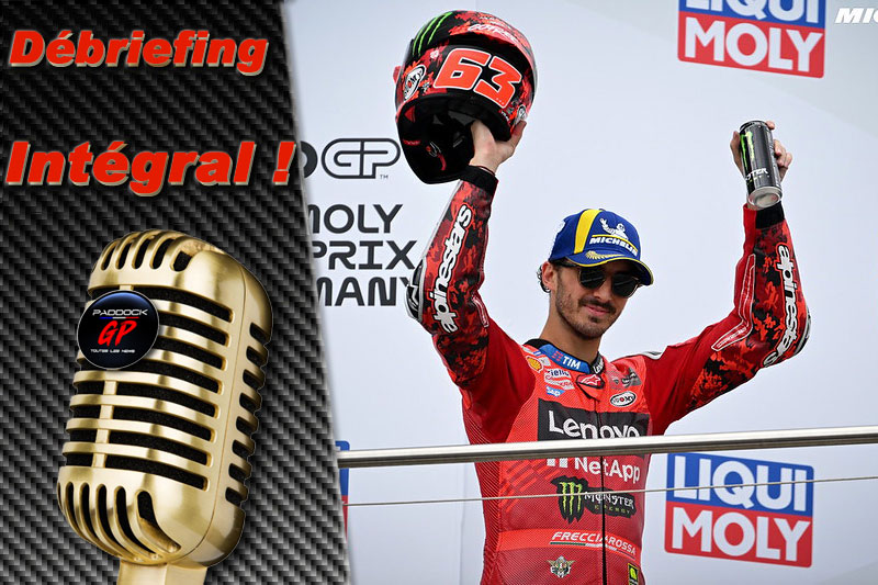 Le débriefing intégral de Francesco Bagnaia après un inespéré Grand Prix MotoGP d'Allemagne au Sachsenring qui lui vaut un nouveau podium...