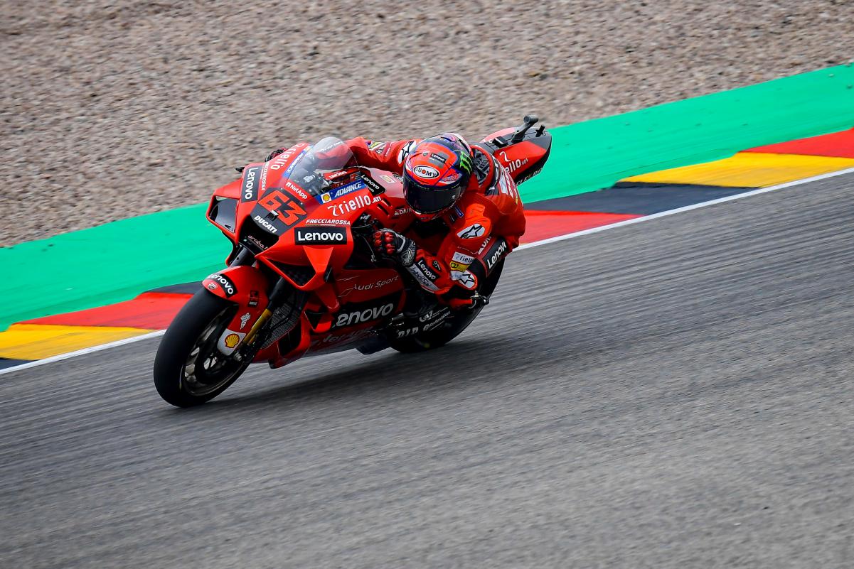 Pecco Bagnaia avait déclaré au terme des qualifications qu’il avait finies dixième, qu’il ferait travailler son imagination en course pour remonter sur les hommes de tête lors du Grand Prix d’Allemagne. Et pour cause : cette mission relève généralement de l’impossible sur le tourniquet du Sachsenring. Et pourtant, l’Italien a réussi à se hisser jusqu’à une très honorable cinquième place. D’autant plus que lors des premiers tours il était carrément seizième avec une Ducati frappée par un souci d’adhérence qui s’est évanouie après sept tours…