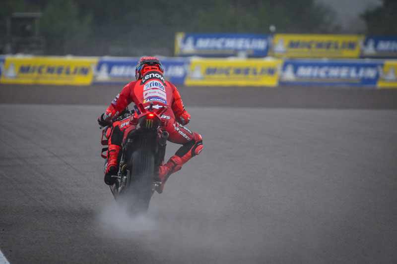 « Heureusement, notre préparation avait intégré à la fois les scénarios météorologiques et les contraintes propres au profil du circuit », indique Piero Taramasso, manager de la compétition deux-roues de Michelin Motorsport. « La principale difficulté, au-delà de la gestion de la pluie, a été la température de la piste, restée basse tout au long du week-end (avec un pic à seulement 29°C au sol lors du départ du Grand Prix), ce qui a ajouté un défi supplémentaire. Pour la Tissot Sprint, les pilotes ont opté dans leur immense majorité pour un pneu Medium à l’avant et un Soft à l’arrière, le meilleur compromis possible. Lors du Grand Prix, disputé sur piste sèche, nos partenaires ont cette fois tous choisi le pneu Hard à l’avant pour sa constance, et le Medium à l’arrière pour sa polyvalence et sa performance dans la durée. Je retiens de ce week-end que toutes les gommes ont parfaitement répondu aux attentes malgré la nature particulière de ce circuit, où nous avons utilisé des pneus asymétriques à l’avant comme à l’arrière (côté gauche de la bande de roulement renforcé). Sur un tracé aussi exigeant, rendu encore plus difficile par les précipitations et le froid, c’est une véritable prouesse. »