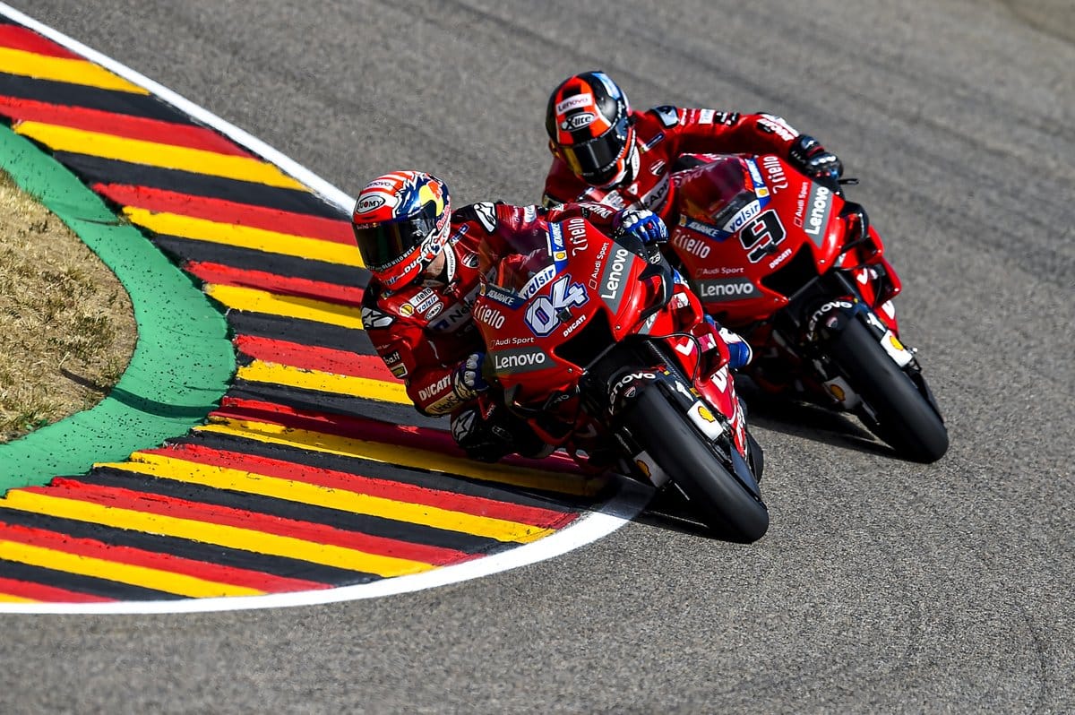 Au terme des qualifications sur le Sachsenring où il n’avait même pas pu sortir de la Q1, Andrea Dovizioso clamait à qui voulait l‘entendre qu’il ne lâcherait pas l’affaire, qu’il se battrait jusqu’au bout contre Marc Marquez. A l’arrivée d’un Grand Prix d’Allemagne bouclé à la cinquième place, le discours se faisait déjà moins tonitruant. Voire même résigné. Il faut dire que le quatrième devant lui n’était autre que son équipier Danilo Petrucci…
