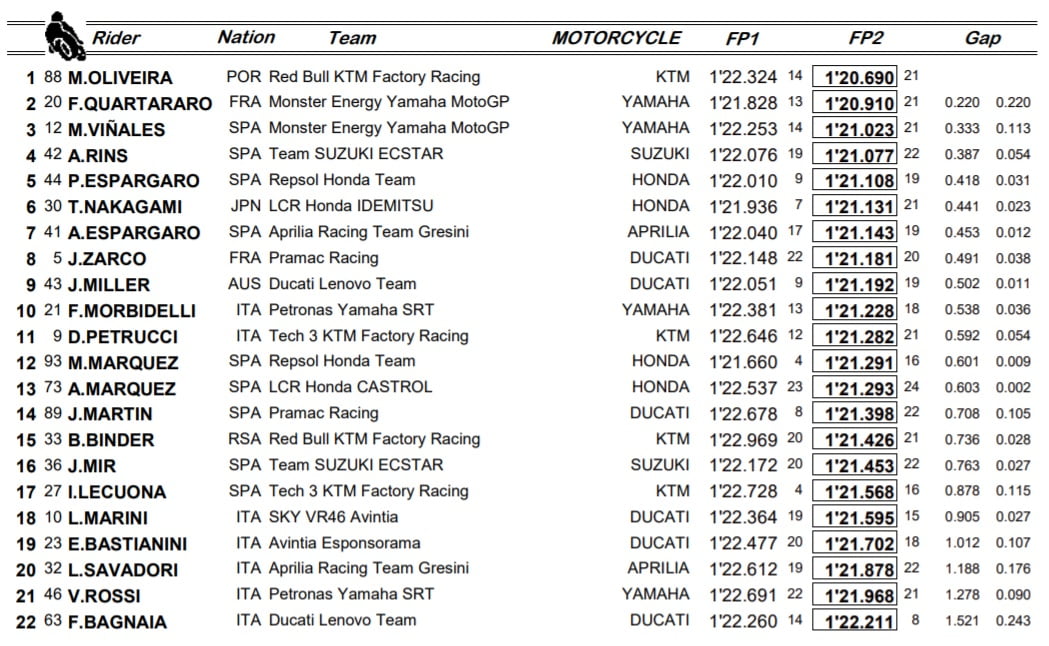 MotoGP Sachsenring – Résultats combinés FP1 & FP2 :