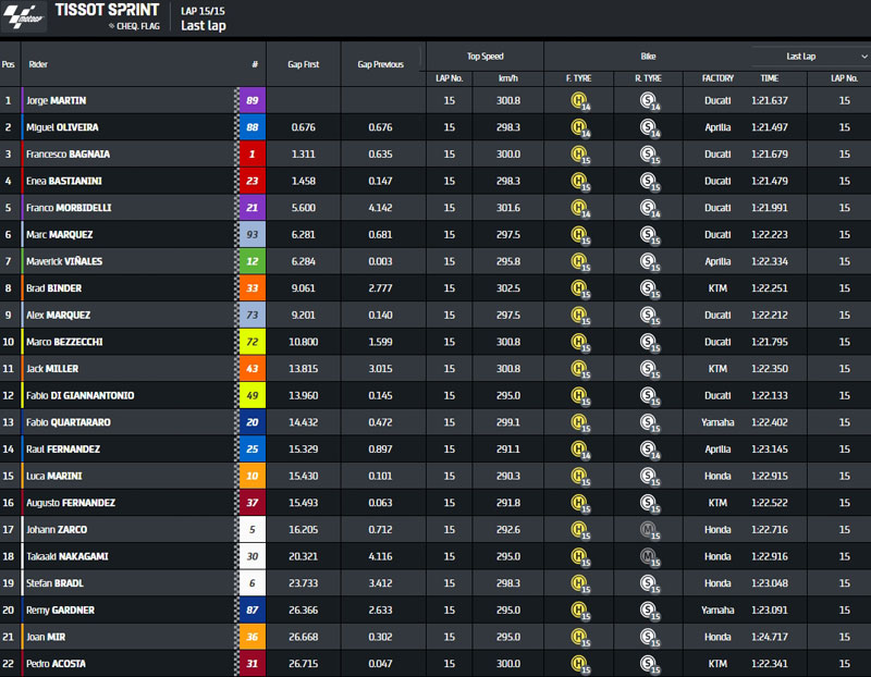 Résultats du Sprint du Grand Prix d’Allemagne MotoGP 2024 au Sachsenring :