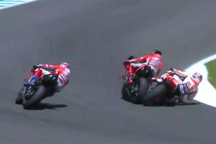 « Lorenzo ne voulait pas me laisser passer et à n’importe quel prix. Il m’a bloqué. Il était assez rapide mais surtout très lent au point de corde des virages. Il avait un problème avec son pneu avant soft. Mais pour défendre sa position, il ralentissait énormément. Il fermait toutes les portes, son objectif était de ne pas me laisser passer ».