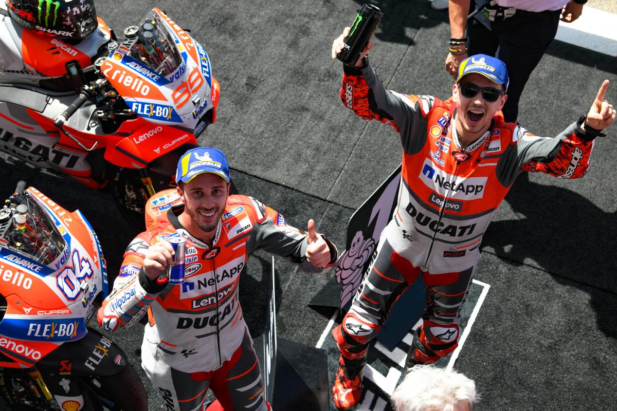 Sur l’éclosion de la Desmosedici version GP18 et son évaluation comme meilleure machine actuelle du MotoGP, il commente : « nous avons amélioré notre situation depuis l’année dernière. Mais seuls Jorge et moi sommes forts avec la Ducati. Nous n’avons apporté aucun changement majeur aux tests de Misano et d’Aragon. Et pas plus lors des derniers mois. Il s’agit de comprendre ensemble comment mieux adapter la moto aux pneus. Si vous avez une très bonne base, il est difficile de faire un grand saut. Mais vous pouvez progresser pas à pas en travaillant sur chaque détail. Si vous pouvez améliorer quelques détails, cela fait beaucoup de différence à la fin de la course. C’est ce qui s’est passé ».