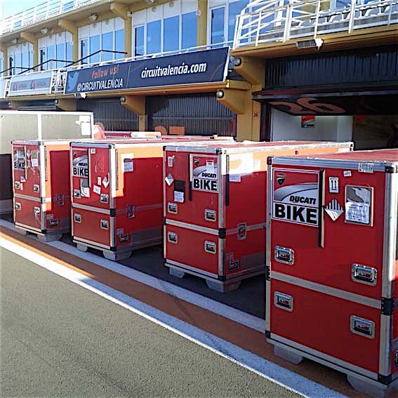 Chaque équipe du MotoGP a le droit de transporter par avion un fret de 9.5 tonnes payé par Dorna. Si la limite de poids est dépassée, les kilos supplémentaires coutent excessivement cher, voilà pourquoi certains conteneurs voyagent par bateau. Même si c’est plus long, avec une organisation sans faille, cela permet d’économiser un tiers du budget qui serait dépensé si tout voyageait en avion !