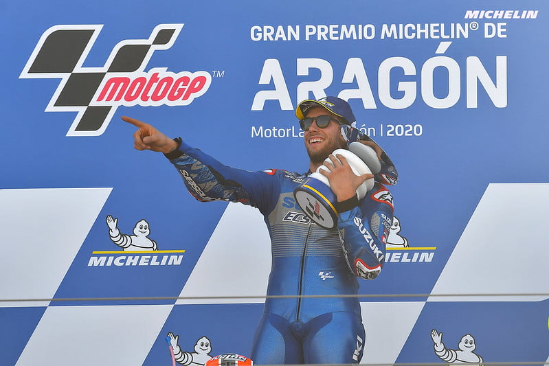 « C’est incroyable de gagner ici à Aragon car quand j’étais petit, je passais mes vacances dans un village tout proche. Je dédie cette victoire à tous les gens qui n’ont pas pu venir au circuit aujourd’hui à cause de la Covid. Suzuki voulait vraiment cette victoire car on décrochait beaucoup de podium avec Joan (Mir), mais la victoire nous échappait cette saison. C’est enfin arrivé et je suis heureux. Je suis très heureux aussi de remporter le Grand Prix de Michelin, surtout après les performances des pneus soft aujourd’hui. Je me sentais bien avec le medium avant, mais j’ai été très en confiance avec le soft avant pour la course. »