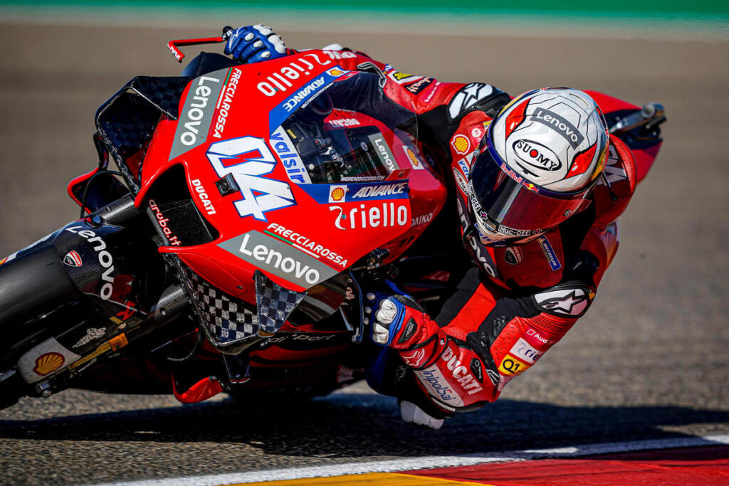 C’est une journée noire qu’ont vécu en Aragon ce vendredi les pilotes équipés avec une moto dont la couleur de prédilection est le rouge. Il ne fallait pas en effet chevaucher une Ducati en ce premier jour du Grand Prix de Teruel si m’on ne voulait pas se prendre une grosse gamelle en termes de performance. C’est bien simple, à part Johann Zarco qui, avec sa GP19, a encore une vue sur le top 10, tous les coureurs en GP20 se retrouvent en fond de classement. Une vraie descente aux enfers dans une ambiance plombée que résume ainsi Andrea Dovizioso…