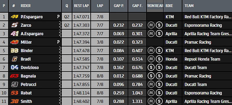 Classement Qualification 2 du Grand Prix de Teruel MotoGP: