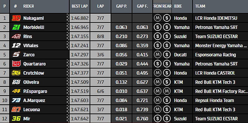 Classement Qualification 1 du Grand Prix de Teruel MotoGP: