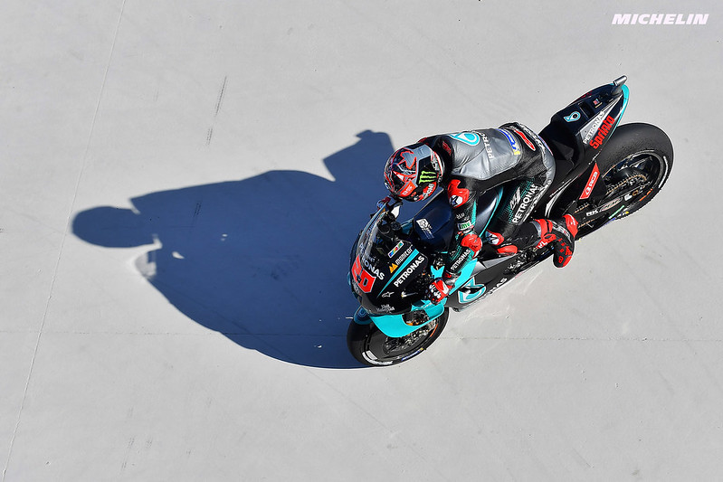 Fabio Quartararo : « La qualification a été dure car nous avons fait beaucoup de changements sur la moto ce weekend, et cela apporte un petit plus pour le rythme de course, mais n’est pas si bien pour la qualification car je n’avais aucun feeling. L’adhérence supplémentaire que nous avons habituellement et le potentiel d’avoir davantage de vitesse de passage en virage sont d’habitude nettement meilleurs. Cela a donc été assez difficile pour moi aujourd’hui mais si nous pouvons améliorer notre rythme demain, c’est le plus important car c’est une piste où je peine beaucoup et je suis très impatient d’arriver à Valencia pour avoir un meilleur feeling. »