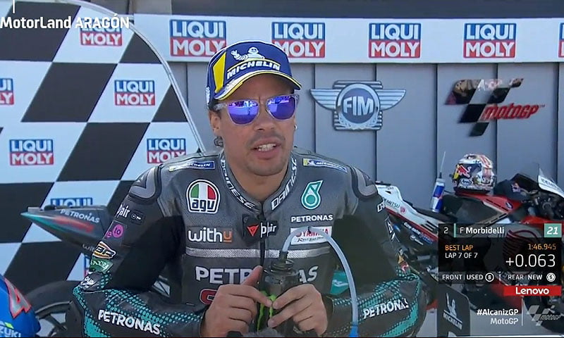 A peine descendu de sa Yamaha M1 satellite du team Petronas Yamaha SRT après avoir obtenu la deuxième place sur la grille de départ du Grand Prix de Teruel, Franco Morbidelli s’est confié devant la caméra du site MotoGP.com avec la satisfaction d’avoir atteint son objectif de la journée…