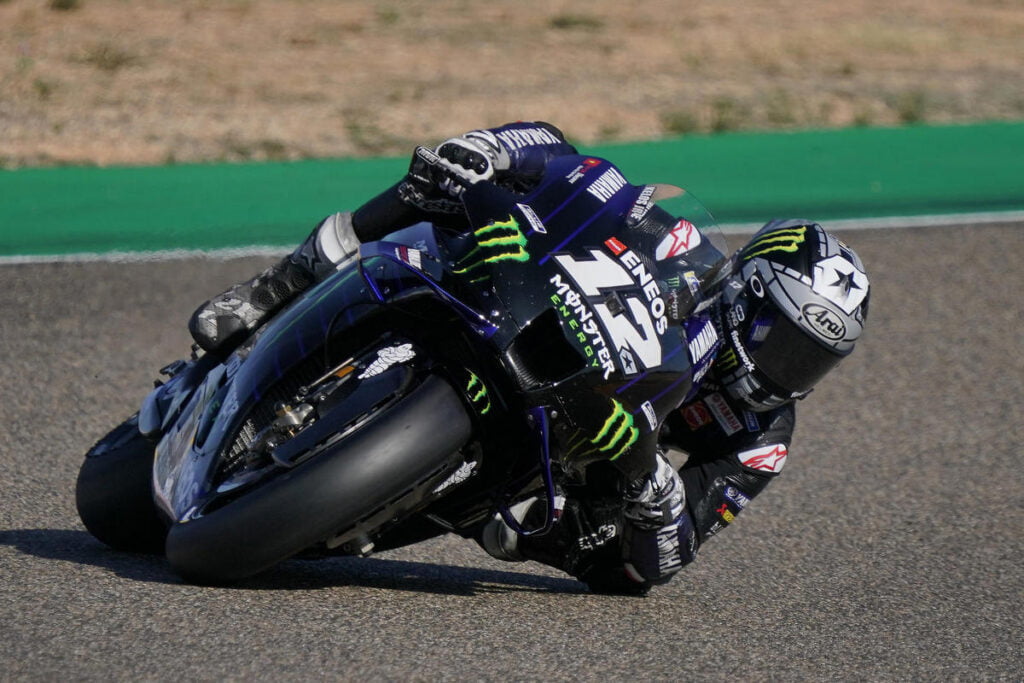 Maverick Viñales a eu du mal dans ce Grand Prix de Teruel en Aragon. Après avoir terminé 7e, le pilote d’usine Yamaha s’est consolé en devançant son collègue de marque et prétendant au titre MotoGP Fabio Quartararo. « Nous n’avons eu aucune adhérence pendant toute la course. J’ai eu beaucoup de mal. C’était très compliqué. Les pneus, la configuration, ou autre, ne nous ont pas permis d’obtenir les performances maximales. Aujourd’hui, nous étions très loin, j’ai juste roulé et essayé de rester en piste. Si vous roulez comme ça, vous ne faites que reculer », a commenté Maverick Viñales à l’arrivée.
