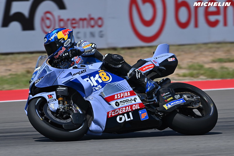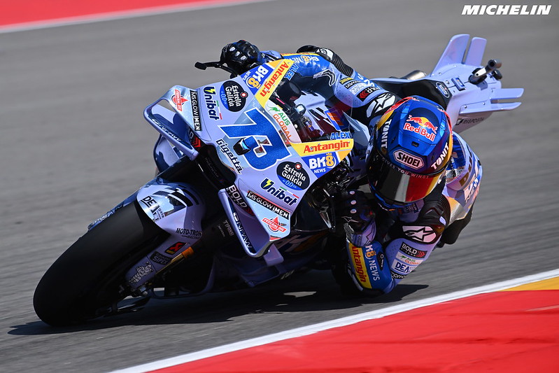 Sagement, Alex Márquez préfère n’envisager aucun bouleversement avant la saison 2027 et, en attendant, préfère se concentrer sur la différence de performance de plus en plus minime entre son frère et lui. À Silverstone, il s’était même montré plus véloce dans l’enfilade des virages rapides. En Aragon, il profite des deux premiers virages à droite pour minimiser son écart…