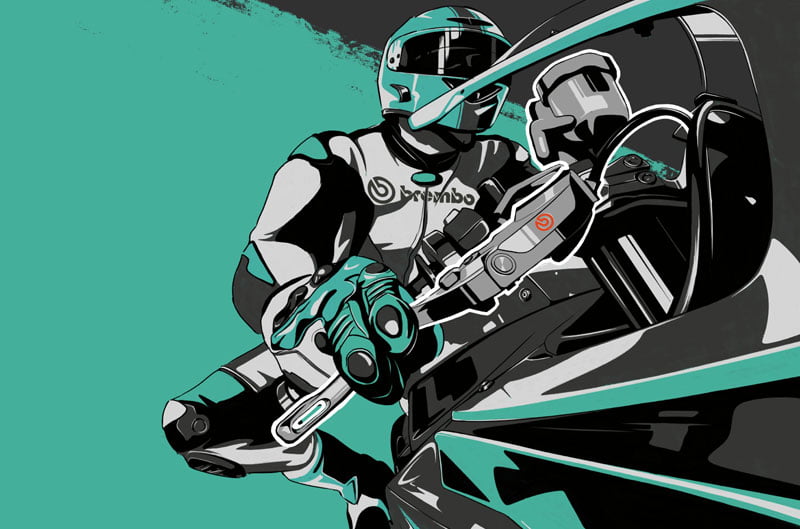 C’est celle que Brembo a imaginée dans les années 1990, mais elle n’offrait pas la possibilité d’actionner le frein arrière avec le frein au pouce et la pédale en même temps; un seul des deux pouvait être utilisé. La version avec deux circuits séparés, en revanche, permet au pilote d’utiliser les deux simultanément grâce à l’étrier arrière à 4 pistons de Brembo : Chaque circuit de freinage, en effet, n’agit que sur deux des quatre pistons.