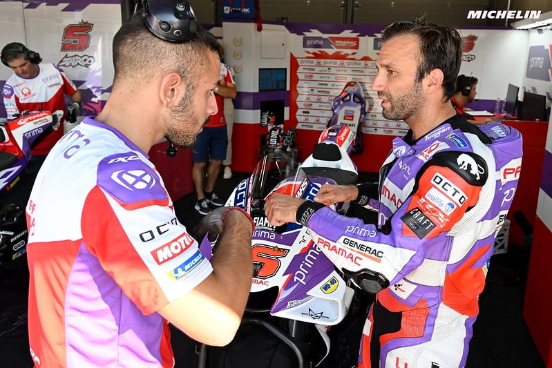 Johann Zarco : « C’est ce que vous dites (rires) ! Je suis très différent des autres pilotes et je ne ressens pas les mêmes choses, mais c’est un grand circuit où je pense que nous pouvons à nouveau être de retour grâce à la bonne puissance que nous avons, même si les autres motos sont bonnes. Mais la principale chose du weekend est le retour de Marc : Je pense qu’il sera au top et quasiment en train de se battre pour le podium, car il est simplement magique ici et il aura beaucoup d’énergie à donner. Je suis heureux de changer de circuit car nous avons fait cinq journées au total à Misano et je n’ai jamais eu le très bon feeling que je peux parfois avoir. Et même pendant le test, nous avons bien travaillé, mais toujours avec des sensations dures pour moi et pas la possibilité de vraiment prendre du plaisir sur la moto. Je suis donc plutôt satisfait de changer de circuit et être un peu plus frais au niveau du feeling pour obtenir de bons résultats. Le redémarrage de la saison, après la pause estivale, avec Silverstone et Misano, a été bon même si Silverstone n’a pas payé pour moi, mais j’ai eu des sensations difficiles à Misano et même pendant le test j’ai eu certaines difficultés en plus d’un feeling difficile. Je veux donc apprécier ce circuit et simplement bien utiliser la Ducati. Quand je vois Pecco remporter des courses, et même le dernier tour de Bastianini qui était vraiment incroyable, cela ne peut que procurer de la motivation pour le faire moi-même. J’espère ! Je ne sais pas quand, mais je suis en quelque sorte prêt pour cela. »