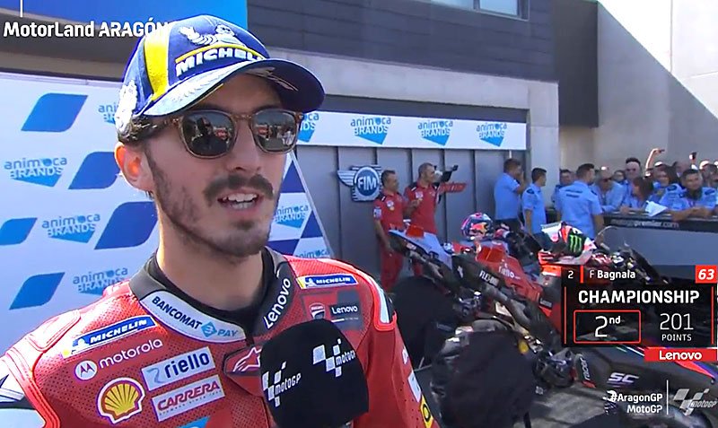 A peine descendu de sa Ducati GP22 officielle après avoir obtenu la 2e place du Grand Prix d’Aragón MotoGP sur le circuit Motorland Aragón, Francesco Bagnaia s’est confié devant les caméras du site officiel MotoGP.com avec la satisfaction d’avoir fait une très bonne opération au championnat …