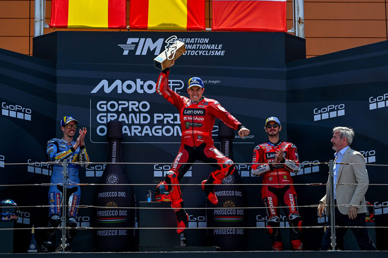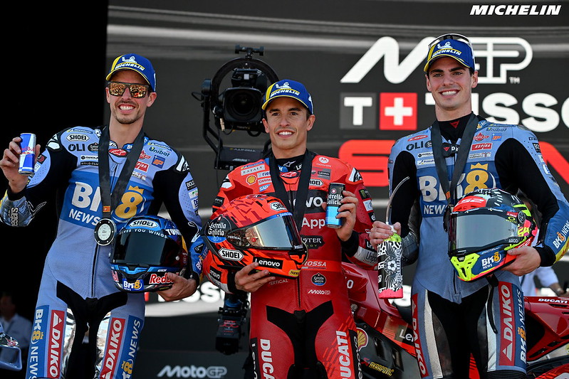 Samedi, la Tissot Sprint a été remportée par Marc Márquez (Ducati Lenovo Team), suivi d’Alex Márquez (BK8 Gresini Racing) et de son coéquipier Fermin Aldeguer.
