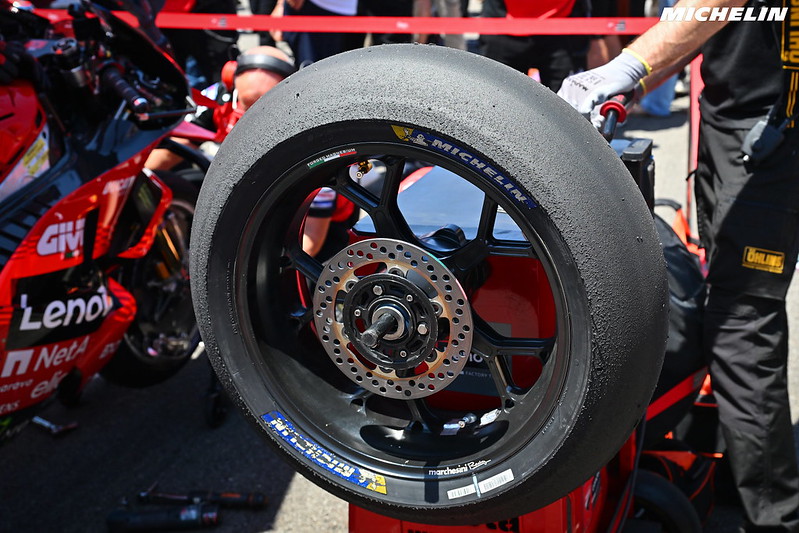 Pour le GoPro Grand Prix of Aragón 2025, Michelin Motorsport avait mis à disposition des écuries de course des mélanges de gomme Soft, Medium et Hard -symétriques- pour la roue avant, mais aussi Soft et Medium pour la roue arrière, cette fois avec le côté gauche renforcé.
