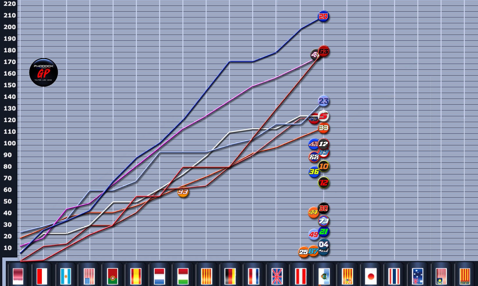 Depuis, Luca Marini a réagi en alignant une série de résultats très consistants se terminant par deux quatrièmes places en Autriche et à Misano, et malgré la magnifique deuxième place de Marco Bezzecchi à Assen, ce dernier concède maintenant 14 points au frère de Valentino Rossi, en grande partie à cause de sa chute à Misano.