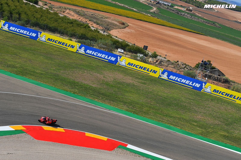 • Michelin Motorsport amène à Aragón ses nouvelles gommes MotoGP, et trois pneus arrière au lieu de deux pour mieux cerner le caractère du nouveau revêtement.