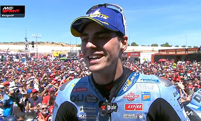 A peine descendu de sa Ducati GP24 du team satellite Gresini Racing après avoir terminé 3e du Sprint du Grand Prix d’Aragon MotoGP 2025, Fermin Aldeguer s’est confié devant les caméras du site officiel MotoGP.com avec la joie de monter pour la deuxième dois sur le podium en trois courses…
