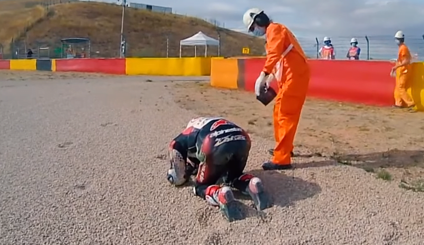 Le Japonais avait été jusque-là le meilleur pilote de la catégorie MotoGP tout au long du week-end à Aragon, en prenant sa toute première pole position et en dominant les essais libres et les qualifications. Malheureusement, le pilote du LCR Honda IDEMITSU a chuté dans le premier tour du Grand Prix de Teruel.
