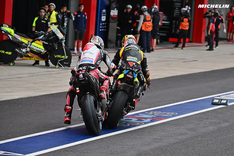 « Entre les essais, les séances de qualifications, la course Sprint et le Grand Prix toutes les spécifications ont été utilisées », indique Piero Taramasso, directeur de la compétition Deux-Roues de Michelin. « Les essais du vendredi et la FP3 se sont déroulés sur une piste sèche en pneu MICHELIN Power Slick, tandis que pour la Q1, sur piste mouillée, les pilotes ont chaussé les pneus MICHELIN Power Rain Medium et Soft. La Q2 a été très spectaculaire car, alors que la pluie s’était arrêtée et que la trajectoire séchait, trois pilotes ont chaussé les pneus slick Soft à l’avant et Medium à l’arrière en réalisant les meilleurs chronos de la séance. »