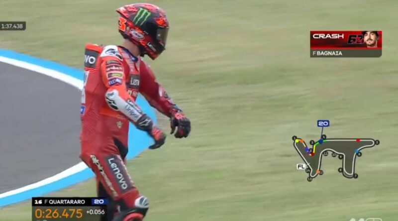 Pecco Bagnaia a eu chaud en Argentine ! Pour cette première journée à Termas de Rio Hondo, le triple champion du monde a failli rejoindre le groupe Q1 à cause d’une chute au plus mauvais moment lors de la Practice. Heureusement pour lui, il n’a pas glissé au-delà de la 10e place, position couperet qui lui assure une participation en Q2. Le problème reste plus ou moins le même : s’il peut se satisfaire de cette Q2 directe, l’Italien n’en reste pas moins très loin de son coéquipier Marc Marquez, premier des deux séances aujourd’hui.