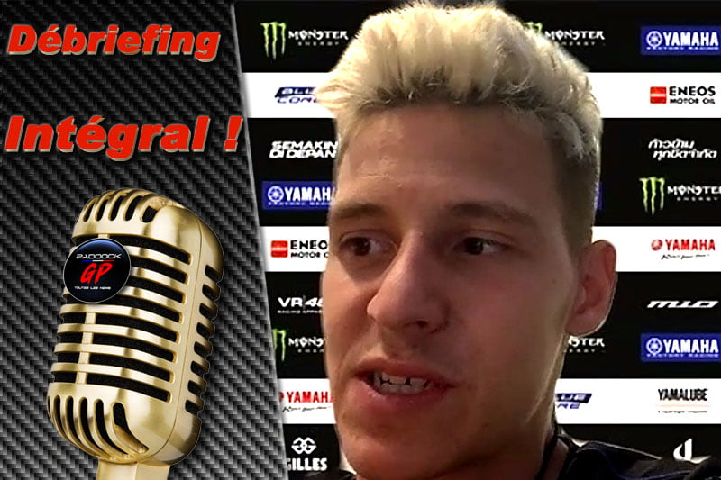« En tout cas, ça perturbe plus notre Yamaha que les autres, car comme je l’ai dit tout à l’heure, le virage numéro six est un virages très facile en tant que pilote, et quand on voit quelqu’un qui s’en va devant toi sur ce genre de virages, c’est frustrant parce que tu sais que tu ne peux rien faire : c’est seulement le fait du peu de grip de la moto et du pneu. Mais surtout, ça ne marchait pas au début. Ça ne marchait pas au début et c’était un petit peu mieux à la fin, mais toujours moins bien que les autres, donc c’est vraiment frustrant. »