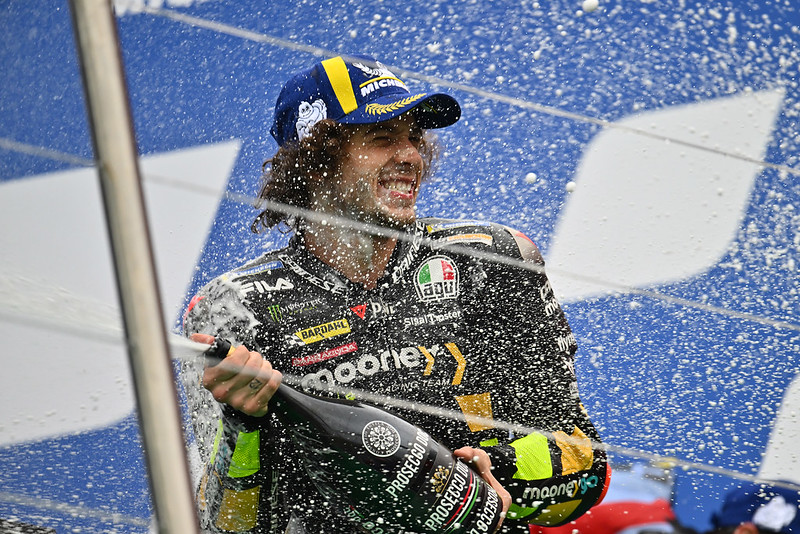 Arrivé en MotoGP l’an passé, l’Italien à l’emblème de scorpion n’a cessé de montrer des choses intéressantes et de progresser au fil ds courses, jusqu’à venir taquiner son aîné de coéquipier, Luca Marini. Cette saison, il semble avoir franchi un cap supplémentaire et apparaît d’ores et déjà comme un adversaire avec qui il va falloir compter. Y compris pour Francesco Bagnaia qui vient de perdre le commandement du championnat du monde…