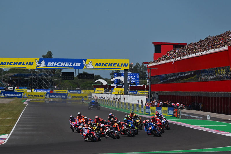 Durant la deuxième séance des qualifications, Aleix Espargaró (Aprilia Racing) a signé la pole position, en arrêtant le chrono à 1’37.688 : juste cinq millièmes de seconde au-dessus du record absolu du tracé argentin. Le pilote Aprilia a tiré parti des pneus MICHELIN Power Slick « Hard » à l’avant et « Soft » à l’arrière de sa moto. Derrière lui, les Ducati de Jorge Martín (Pramac Racing) et de Luca Marini (Mooney VR46 Racing Team) complétaient la première ligne sur la grille de départ.