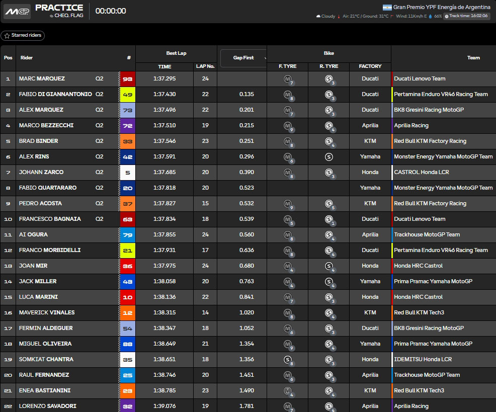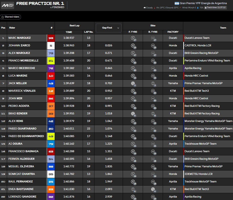 Résultats de la Practice du Grand Prix d’Argentine MotoGP 2025 :