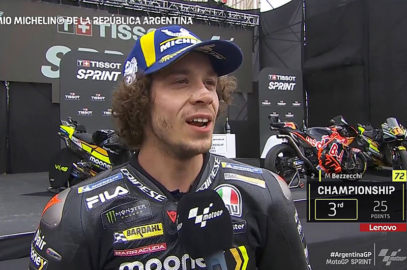 A peine descendu de sa Ducati GP22 de l’équipe Mooney VR46 Racing Team après avoir terminé 2e du Sprint du Grand Prix d’Argentine MotoGP sur le circuit de Termas de Rio Hondo, Marco Bezzecchi s’est confié devant les caméras du site officiel MotoGP.com avec la satisfaction de confirmer la spirale positive dans laquelle il se trouve actuellement…