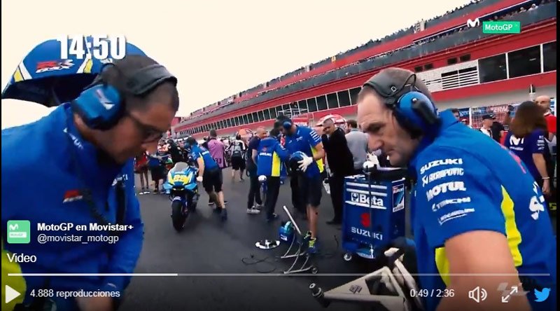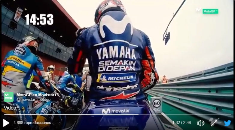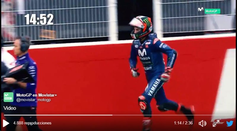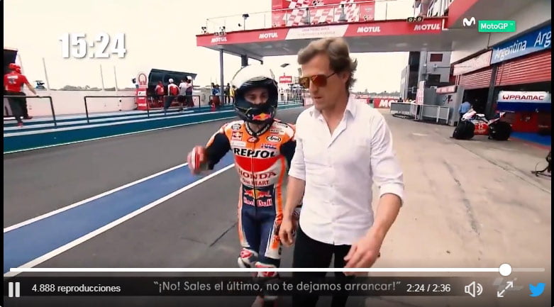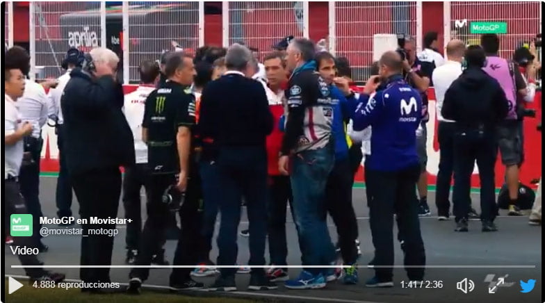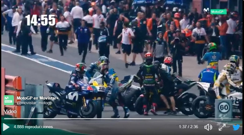 Puis la vidéo se termine avec le calage moteur de Marc Marquez à 15h20 et la protestation de Maverick Vinales quand le pilote Honda se replace sur la grille au lieu d’être évacué en pit-lane pour partir dernier.