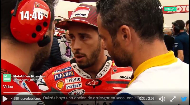 Une minute plus tard, Andrea Dovizioso évoque l’option de partir en slicks: « il y a peut-être une option de miser sur le sec avec des slicks ».