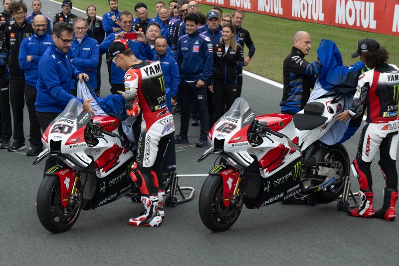 Paolo Pavesio, directeur général, Yamaha Motor Racing : « Aujourd’hui a marqué un moment véritablement symbolique, puisque les deux équipes MotoGP de Yamaha se sont réunies sur la grille de départ, présentant les quatre motos MotoGP aux côtés de l’emblématique YZF-R7 de 1999. L’image forte des deux équipes devenant une seule en utilisant la même livrée représente plus qu’une simple présence commune sur la piste : elle reflète notre nouvelle stratégie, mise en place cette année : nous sommes unis et plus forts ensemble.
