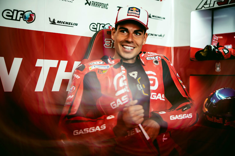 « Pendant toute la pré-saison, je me suis comparé à Pol. Dès que je descends de la moto, les premières données ouvertes sur l’ordinateur sont celles de Pol, et même pas les miennes. Alors oui, ne pas l’avoir à mes côtés a été un peu plus difficile. Je me concentre vraiment sur les autres pilotes KTM, comme Jack et Brad. J’essaie de les copier de toutes les façons possibles. Ils sont très différents, entre eux et aussi par rapport à moi. Mon style de pilotage n’a rien à voir avec celui de Jack et de Brad. De plus, il est difficile de tout analyser parce que je suis un grand pilote, un garçon de grande taille, et j’ai eu des difficultés en Moto2, en particulier l’année dernière avec le poids et tout le reste. J’étais donc très excité, mais je pensais aussi à essayer de me sentir plus à l’aise avec la moto en MotoGP. Je suis beaucoup plus à l’aise qu’en Moto2. La première chose que j’ai remarquée et que je devais améliorer, c’est le freinage : En MotoGP, il faut vraiment faire confiance aux freins et les utiliser pour gagner du temps, et ce n’était pas mon style en Moto2, mais oui, jusqu’à présent, c’est toujours mon point faible en MotoGP. »