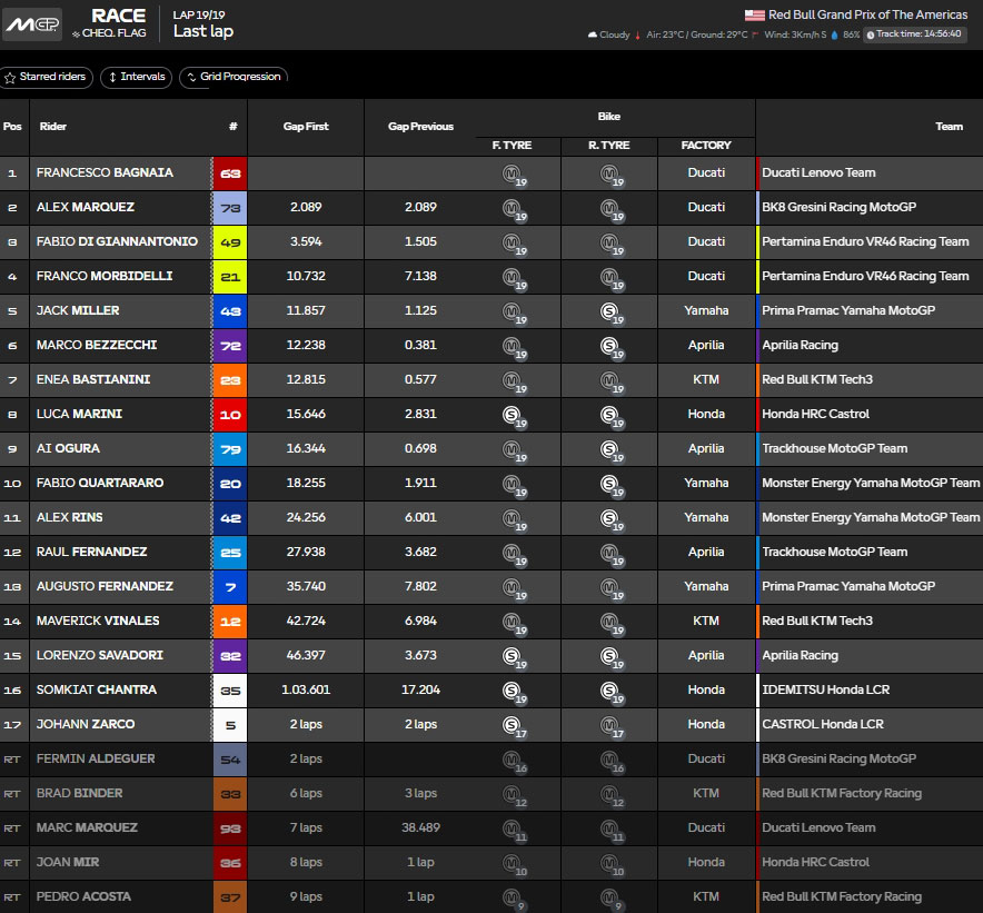 Résultats du Grand Prix des Amériques MotoGP 2025 :