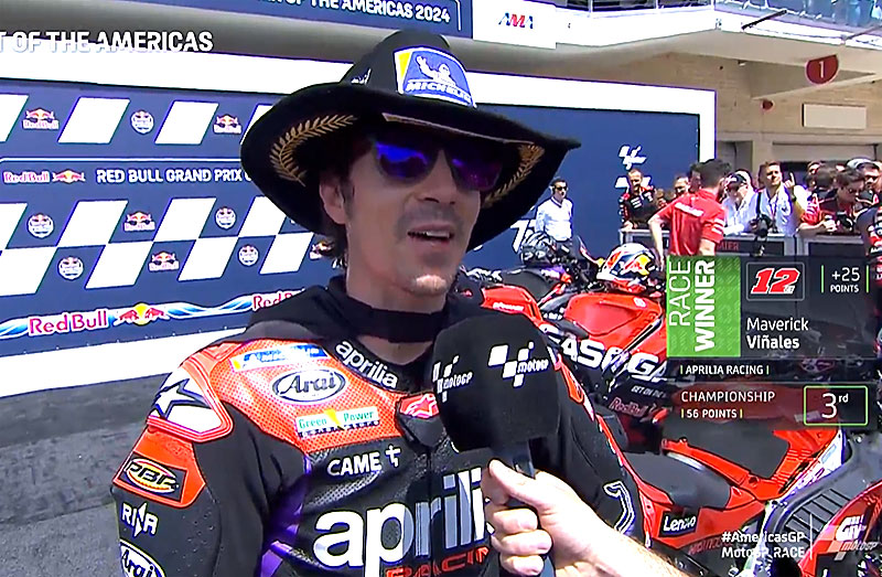 A peine descendu de son Aprilia RS6GP 24 officielle après avoir remporté le splendide Grand Prix MotoGP des Amériques sur le COTA à Austin, Maverick Vinales s’est confié devant les caméras du site officiel MotoGP.com très ému…