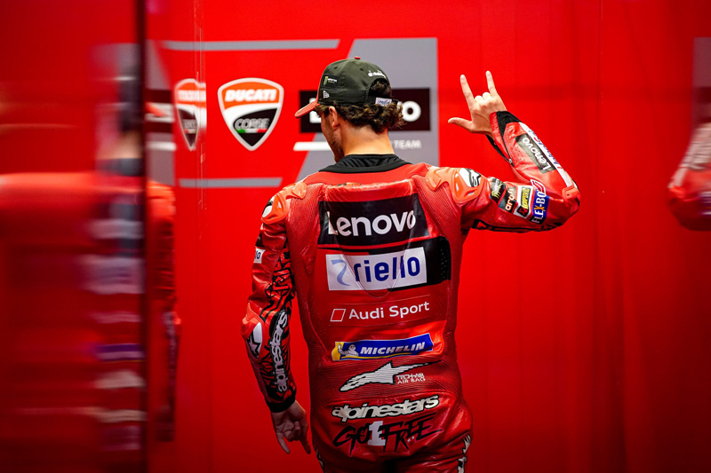 De l’autre côté du box, c’est l’heure de la rédemption pour son coéquipier Francesco Bagnaia. Le champion du monde en titre est également très rapide sur le tracé texan, comme le montrent sa pole position et sa victoire en Sprint l’année dernière. C’est le deuxième as aligné par Borgo Panigale, constituant une paire qui peut d’ailleurs être considérée comme un brelan, avec l’affamé Jorge Martin en tête du classement général.