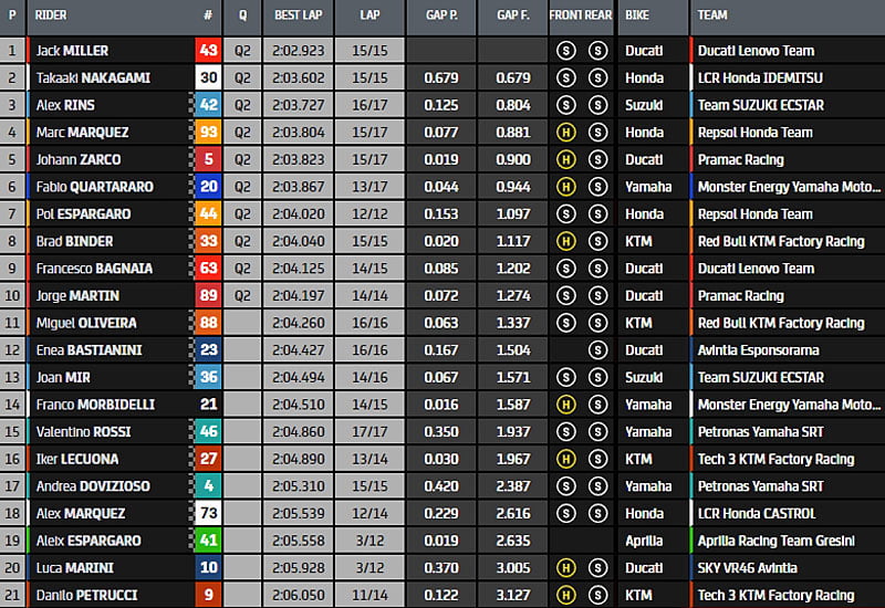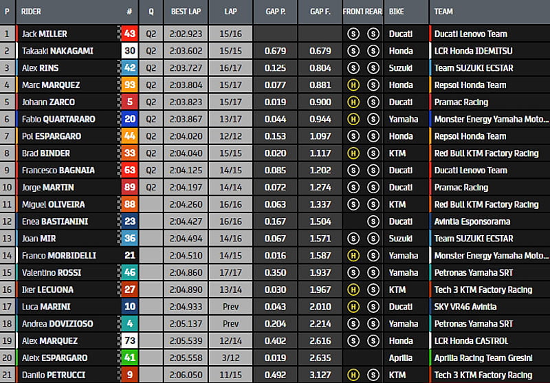 C’est d’ailleurs le constat déjà assimilé par Marc Marquez et Jack Miller, les deux hommes qui se sont montrés particulièrement compétitifs, que ce soit vendredi matin sur le mouillé ou vendredi après-midi sur le sec !