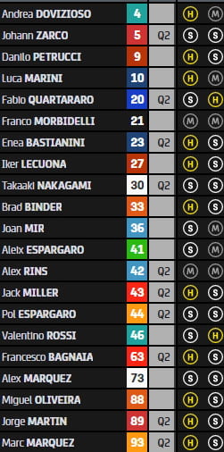 | Course | Rins, Rossi, Miller (Voir ici) | |